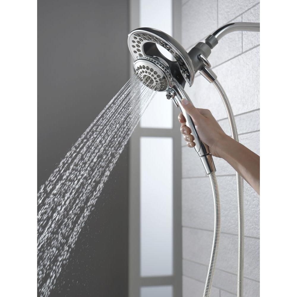 The In2ition 2-in-1 5-Spray Hand Shower and Shower Head Combo Kit in Chrome is a simple and convenient way to update the look and functionality of your bath. The easy-to-use, 3-way diverter lets you choose to operate either the Hand shower, shower head or both at 1 time, while the matching plated face and push-button pause control create a seamless look. You’ll have great range of motion with the 6 ft. flexible hose, great for hard-to-reach spots or for bathing kids and pets. This extra-wide, full-spray showerhead features 5 spray settings including massage, designed for a personalized shower every time.