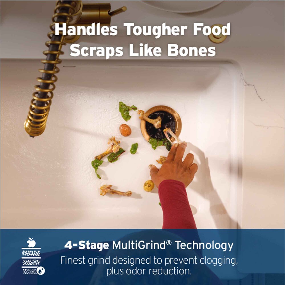 Our most premium garburator, the Evolution1.0 HP features our highest horsepower, quietest SoundSeal Technology, and longest warranty. Its 4-Stage MultiGrind Technology is designed to grind all types of food scraps the finest.